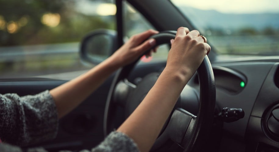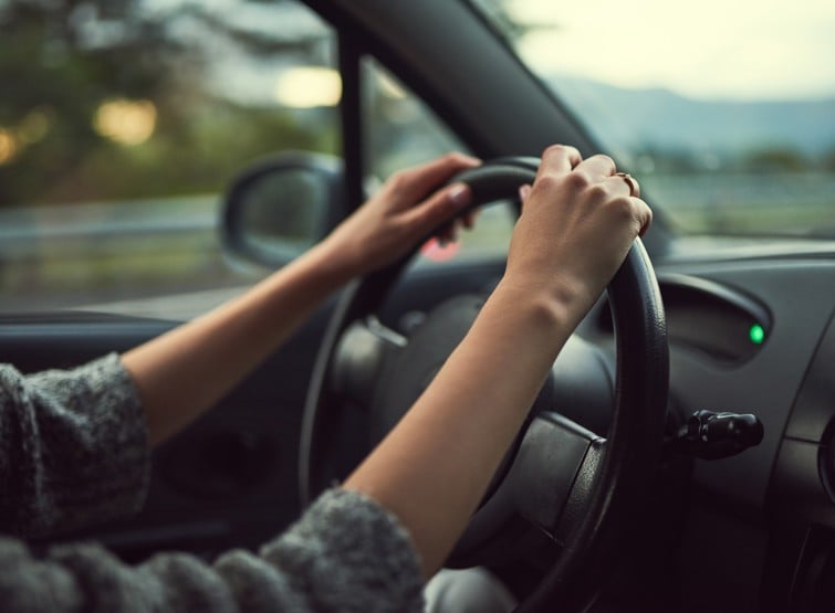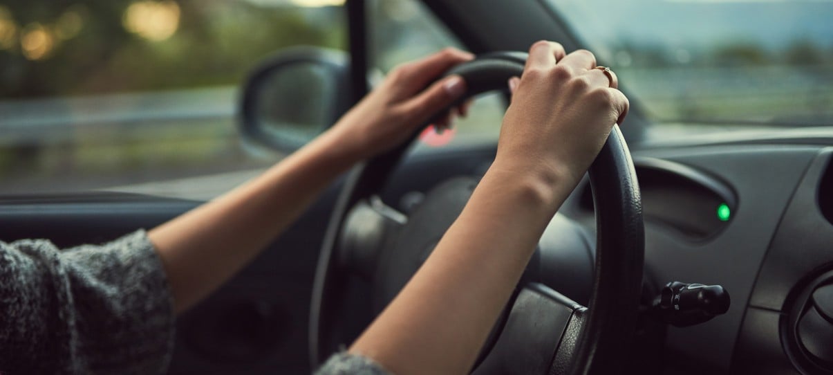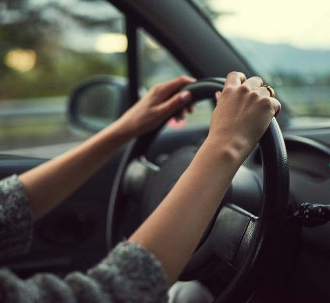 A white outline of a car with a large thumbs-up symbol above it, set on a dark blue circular background.
